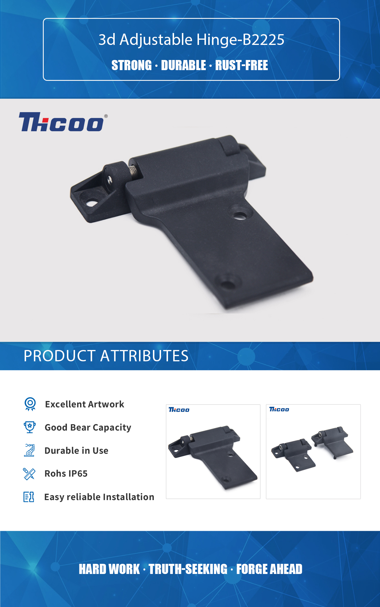 Vi har vårt eget testlaboratorium og det avanserte og komplette inspeksjonsutstyret, som kan sikre kvaliteten på produktene.3d Justerbar Hinge-B2225 er en type hengsel som er designet for å tillate tredimensjonal bevegelse av delene som hengsles sammen . Den består typisk av et blad som er montert til en del og et blad som er montert til en annen del, og en stift som forbinder de to bladene og lar delene svinge i forhold til hverandre i tre dimensjoner.